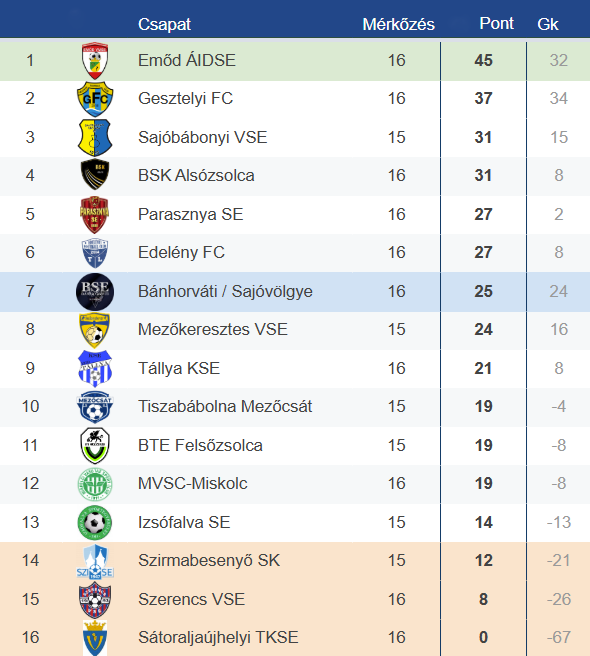 November első napján a 13. fordulóval folytatódott a Borsod-Abaúj-Zemplén vármegyei I. osztályú bajnokság. A Bánhorváti-Sajóvölgye hazai környezetben kezdhette meg a hónapot, ellenfélként a forduló előtt a tabella alsó fokán tanyázó Edelény érkezett.